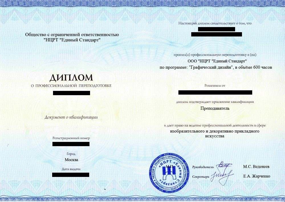 • «Преподаватель» с правом осуществления профессиональной деятельности в сфере изобразительного и декоративно прикладного искусства